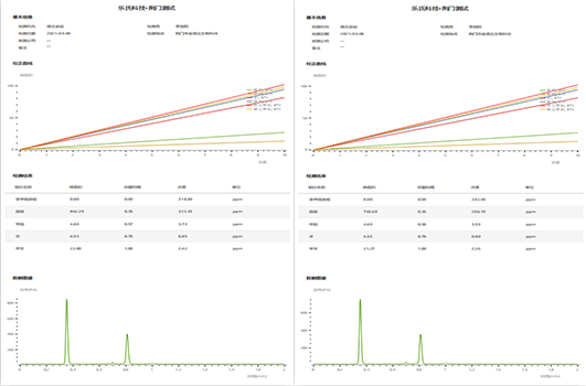 SE3800在工藝入口連續(xù)測試兩次結(jié)果導(dǎo)出的報表形式,譜圖及結(jié)果基本一致,儀器重復(fù)性良好。