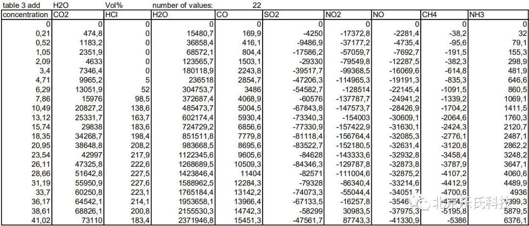 通過準(zhǔn)確濾波技術(shù)進(jìn)行檢測被測樣品,同時對每個測量組分進(jìn)行動態(tài)多點量程線性調(diào)校,并且同時進(jìn)行多點動態(tài)數(shù)據(jù)交叉干擾補(bǔ)償(以 H2O為例),氣體組分間的交叉干擾是非線性關(guān)系,無法通過常規(guī)線性補(bǔ)償系數(shù)進(jìn)行修正。